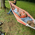 In zwei Gruppen aufgeteilt, stand am Vormittag ein Ausflug in den nahegelegenen Wald an. Es galt ein Waldxylophon aus herumliegenden Ästen zu erstellen, das auch bespielbar sein und im Wald verbleiben sollte. Beide Gruppen lösten die Aufgabe auf unterschiedliche Weise, aber in beiden Fällen sehr kreativ!